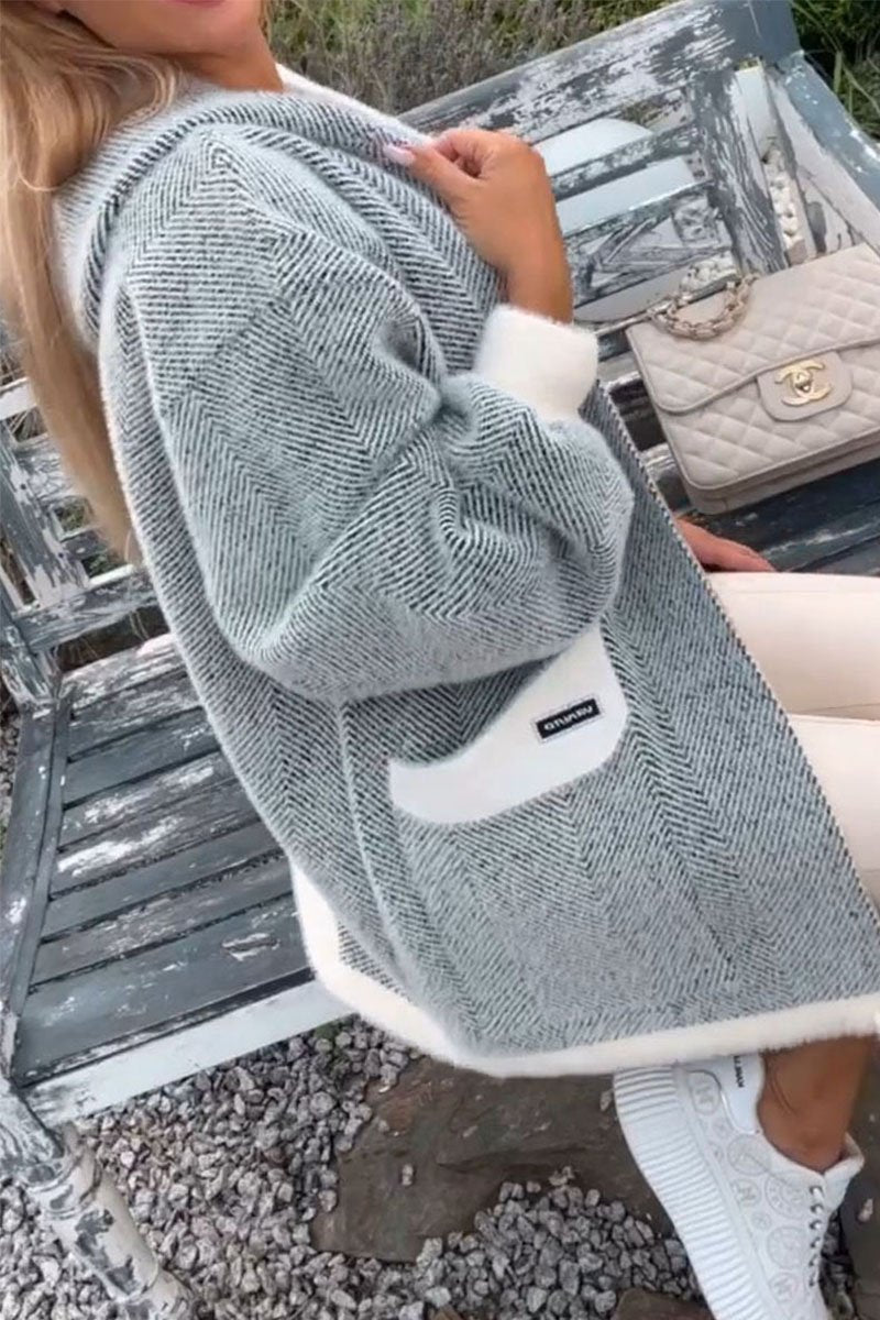 Women's Patchwork Long Sleeve Hooded Knitted Coat