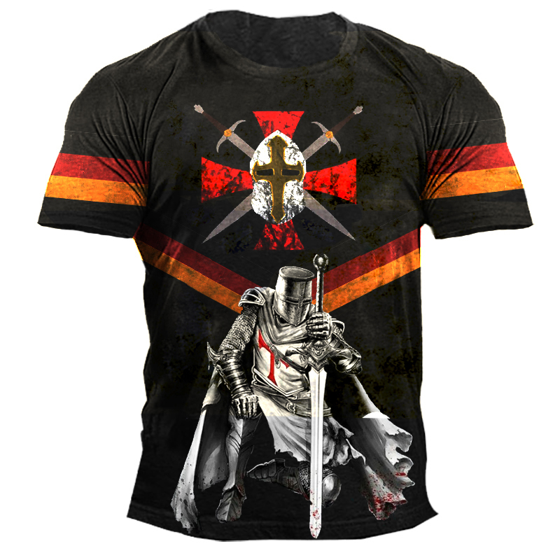 Men's Knights Templar German Flag Colorblock Print T-Shirt